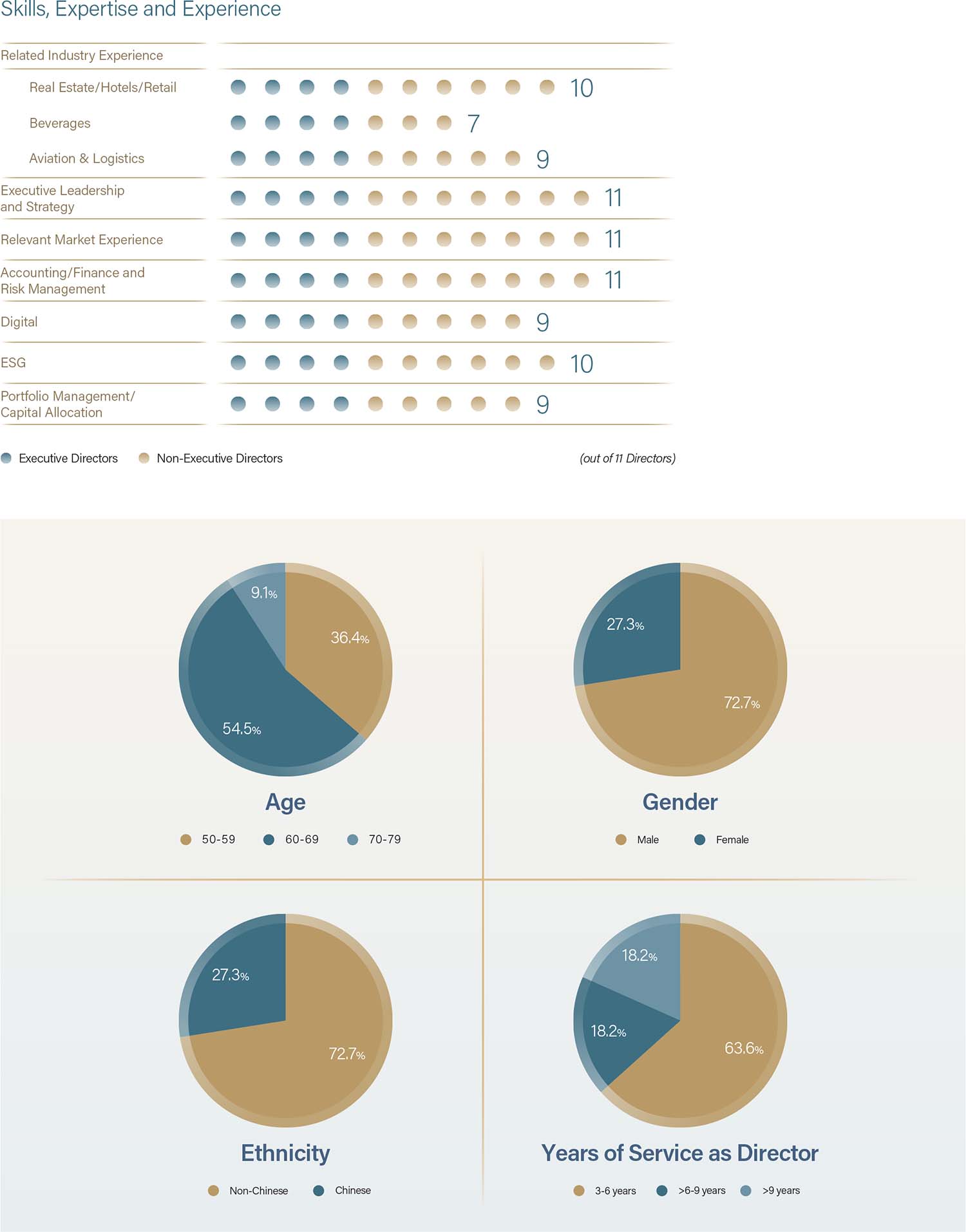 The Board comprises the Chairman, three other Executive Directors and seven Non-Executive Directors. Their biographical details are set out in the section of this annual report headed Directors and Officers and are posted on the Company’s website. With effect from 13th May 2026, Patrick Healy will cease to be a Director of the Company for reason of his retirement from the Swire group.