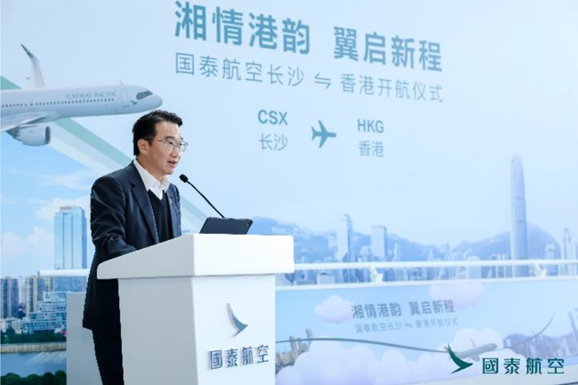 国泰中国内地董事郑家驹表示:「长沙航线的开通,标志着国泰落实内地战略扩张的又一重要举措,并充分印证我们『植根香港、背靠祖国、联通世界』的独特优势。新航线将进一步加强香港与内地主要城市的联系,为我们的顾客提供更便捷无缝的体验往返香港、长沙及世界各地,以及向全球旅客展示朝气蓬勃的湖南省和其深厚的文化承传。」