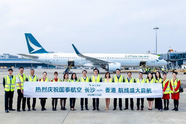 国泰航空今日正式开通往返香港与长沙的直航服务,标志着集团进一步拓展内地航线网络。连同旗下低成本航空公司香港快运,集团于内地营运的航点总数增至 24 个。