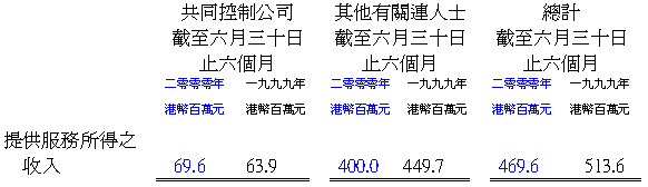 本 公 司 为 共 同 控 制 公 司 之 借 款 融 资 提 供 担 保 , 二 零 零 零 年 六 月 三 十 日 结 算 数 额 达 港 币 九 千 万 元 ( 一 九 九 九 年 十 二 月 三 十 一 日 结 算 为 港 币 一 亿 零 七 百 万 元 ) , 而 截 至 该 期 /年 度 止 , 其 中 港 币 九 千 万 元 ( 一 九 九 九 年 为 港 币 一 亿 元 ) 已 予 使 用 。