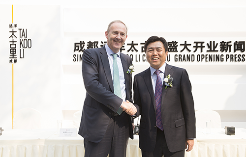 太古地产主席史乐山先生表示:“成都市领导的远见要求我们为这一久负盛名的地区打造出一个与众不同的项目。我们为此定制的设计理念既时尚现代,又充分尊重当地的历史文化。成都远洋太古里是太古地产对不断追求创新和变革发展的最好印证。我们由衷地希望成都市民能够享受成都远洋太古里所带来的一切,并将其视为他们家乡的又一地标。”