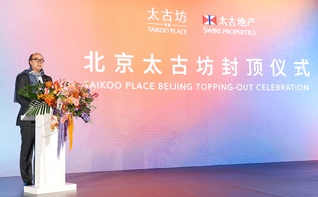 太古地产行政总裁彭国邦在封顶仪式上致辞,分享项目愿景。
