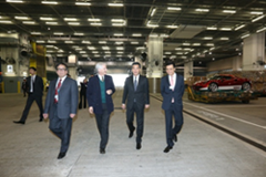 | 香港特別行政區行政長官梁振英先生及國泰航空公司行政總裁史樂山先生進行國泰航空貨運站揭幕儀式。 |